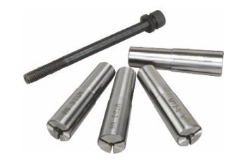 引き型コレットチャックセット No.66040 主軸に差し込むタイプのコレットホルダーです。φ3/4/5/6mm 4本セットです。バーチカルスライドNo.66006で材料加工する時や細材の把握を行う場合に用います。 |