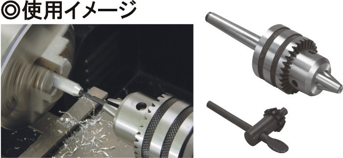 ドリルチャック(MT-1) No.66016 心押台に取り付けて、ドリル穴加工を行うためのアタッチメントです。センタードリルやコアドリルを使って穴あけ加工を行います。φ1.0~10.0mmのドリルを把握できます。 |