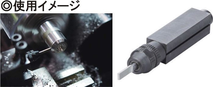クイックチェンジツール No.66055 切削バイトの高さ調整が簡単にできるようになります。また、最大10mm角迄の切削バイトが利用できます。 |