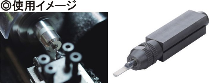 クイックチェンジツール No.66055 切削バイトの高さ調整が簡単にできるようになります。また、最大10mm角迄の切削バイトが利用できます。 |