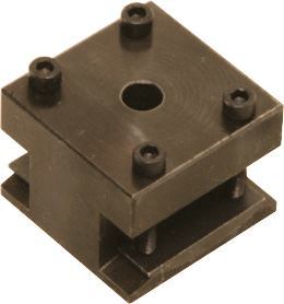 精密卓上旋盤コンパクト9用の刃物台。切削バイトの接地面が三日月型になっていて刃高さの