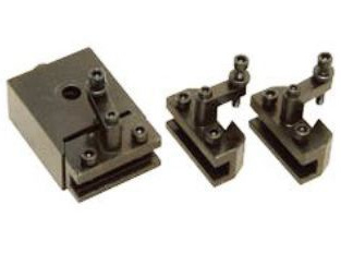 クイックチェンジツール No.60528 トップスライド上に内蔵している刃物台と置き換えて使用します。各ホルダーに切削バイトを予め固定しておき、加工毎に切削バイトを交換する時の刃の高さ調整が簡単にできるようになります。 |