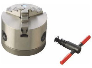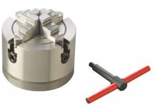 三爪チャックΦ80mm No.66009 標準付属の三爪スクロールチャックと同等品。主に旋盤用のワークピース(材料)を把握するのに用いる器具です。付属のチャックハンドルを使って操作すると、三つの爪が連動して可動し把握が簡単です。逆爪も付属し大径の材料の把握も可能。丸棒や三角柱、六角柱の形状に適しています。他にフライス盤用のロータリーテーブルと併用して加工の幅をひろげます。 |