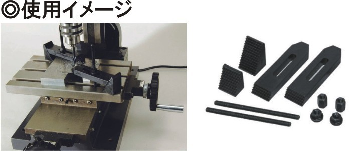 クイックバイス No.66205 ミニフライス盤リトルミーリング1で工作物(材料)を把握するために用いる器具です。 |