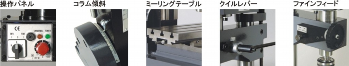 | 送りハンドル | 前後左右 0.025mm/目盛 80目盛/回転 ファインフィールド 0.05mm/目盛 1.8mm/回転 |