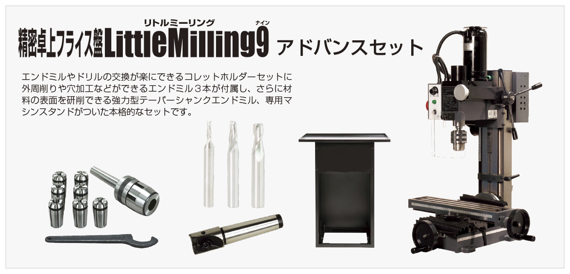 | 製品仕様 | アドバンスセット、精密卓上フライス盤 リトルミーリング9(LittleMilling9) |