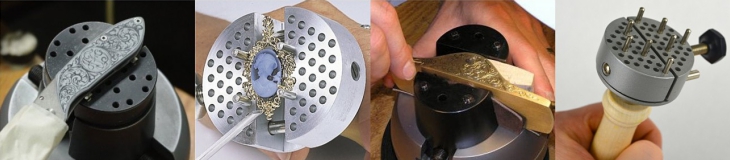 石留め、彫刻作業等に使用する彫刻台です。付属の留めピンで、小さな物も簡単に固定できます。