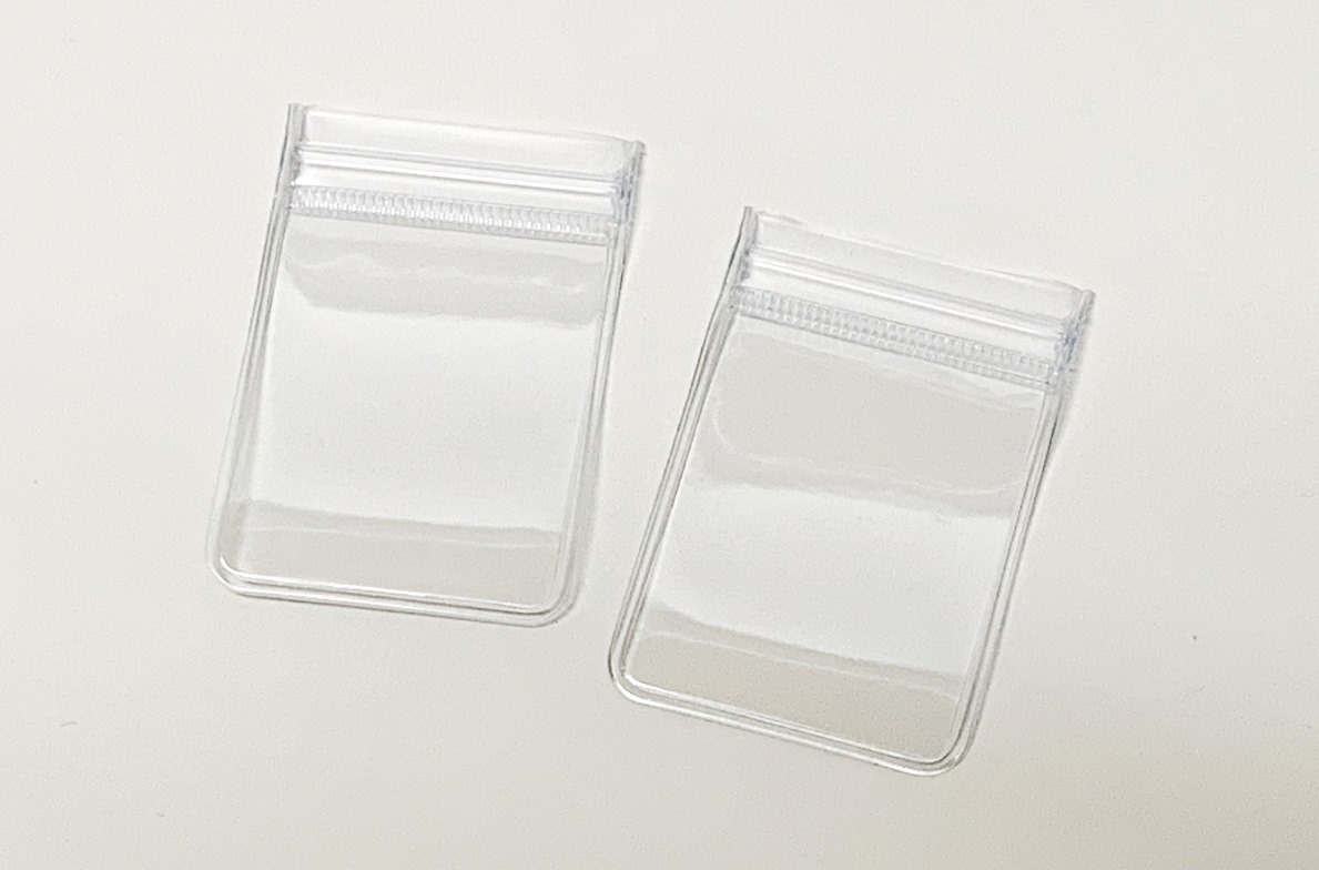 ルースケース二つ折り ソーティングポケット付 寸法:118×95×0.2mm 20枚入 ソーティングカードが入れられるポケットが付いた厚手ビニール製のチャック付ルース袋です。 2,400円(税別) |