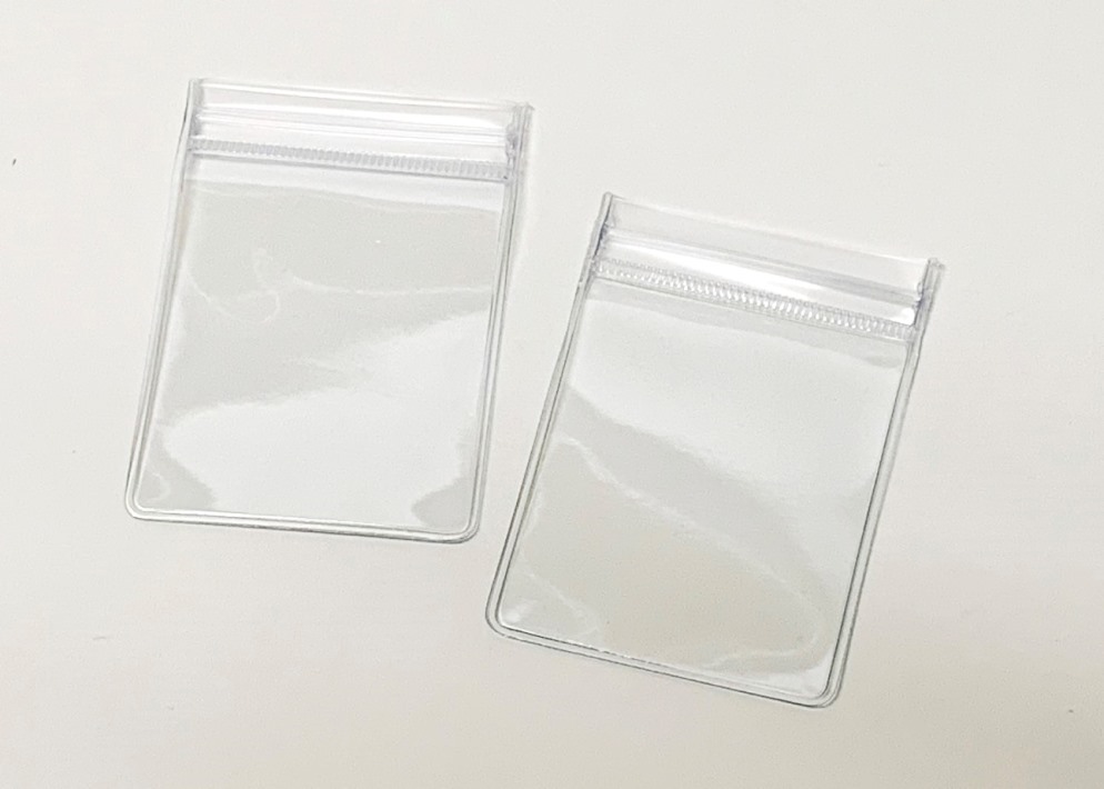 ルースケース二つ折り ソーティングポケット付 寸法:118×95×0.2mm 20枚入 ソーティングカードが入れられるポケットが付いた厚手ビニール製のチャック付ルース袋です。 2,400円(税別) |