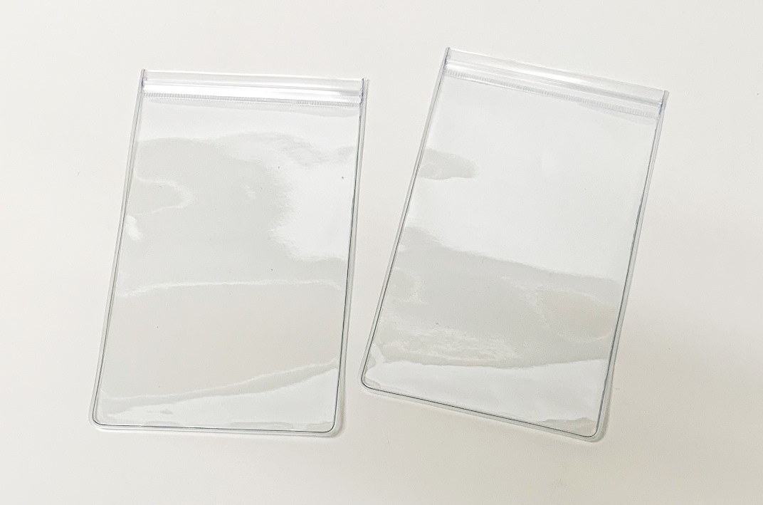ルースケース二つ折り ソーティングポケット付 寸法:118×95×0.2mm 20枚入 ソーティングカードが入れられるポケットが付いた厚手ビニール製のチャック付ルース袋です。 2,400円(税別) |