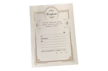 保証書C(10枚入) サイズ:180×250mm 高価なジュエリーに最適な保証書です。 800円(税別) |