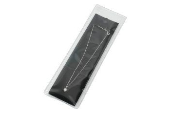 台紙付きネックレス用ビニール袋 寸法:250×70×0.2mm (10枚入) 厚手のチャック付ビニール袋に専用台紙を組み込んでるのでネックレスなどがキレイに収まります。 2,300円(税別) |