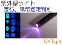 紫外線ライト(UVライト) ダイヤモンド、宝石、偽札、パスポート、クレジットカードなどの判別、検査補助に使用します。 |