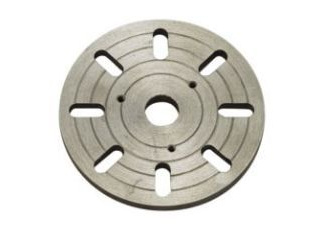 三爪チャックΦ80mm No.66009 標準付属の三爪スクロールチャックと同等品。主に旋盤用のワークピース(材料)を把握するのに用いる器具です。付属のチャックハンドルを使って操作すると、三つの爪が連動して可動し把握が簡単です。逆爪も付属し大径の材料の把握も可能。丸棒や三角柱、六角柱の形状に適しています。他にフライス盤用のロータリーテーブルと併用して加工の幅をひろげます。 |
