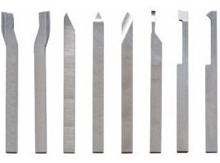 ハイスバイト8本セット No.60590 ハイスバーを刃形状に加工した総型です。それぞれ切りくずの逃がし加工を行ってあり、小型旋盤などのパワーの小さい旋盤でも綺麗な切削面が得られ容易に切削加工が楽しめるようになっています。アルミや真鍮などの切削を想定したブレーカー角度に仕上げてあります。 |
