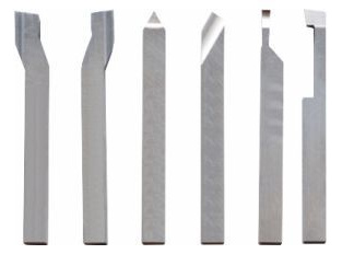 ハイスバイト6本セット No.66595 ハイスバーを刃形状に加工した総型です。それぞれ切りくずの逃がし加工を行ってあり、小型旋盤などのパワーの小さい旋盤でも綺麗な切削面が得られ容易に切削加工が可能です。 |