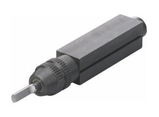 クイックチェンジツール No.60528 トップスライド上に内蔵している刃物台と置き換えて使用します。各ホルダーに切削バイトを予め固定しておき、加工毎に切削バイトを交換する時の刃の高さ調整が簡単にできるようになります。 |