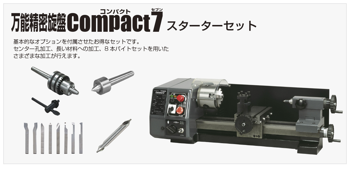 | 製品仕様 | スターターセット、COMPACT7(コンパクト7)万能精密旋盤 |