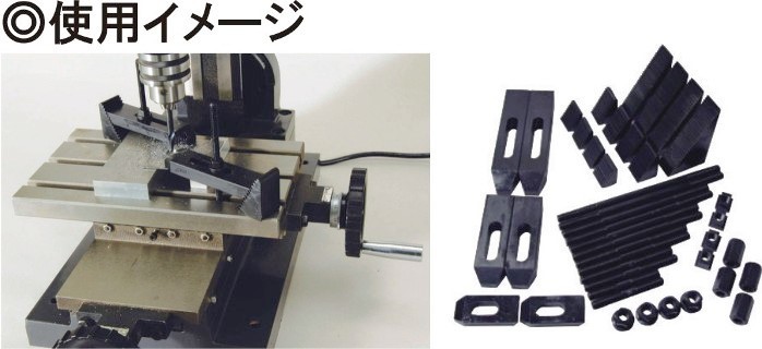 クランプセット(42点入) No.60714 工作物(材料)をミーリングテーブルに固定するために用いる治具です。 |
