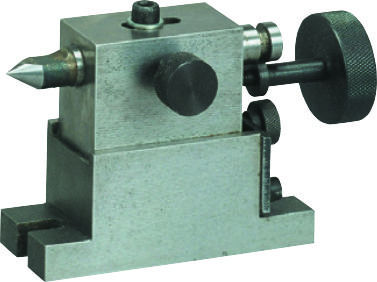 割出用心押台 No.66903 ロータリーテーブルNo.66901をミーリングテーブル上で立てて使用する時に、反対側で押し支えるための心押台。高さ調整が可能です。 |