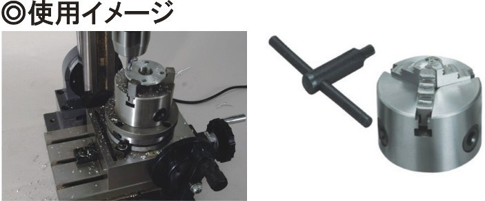 三爪チャックΦ80mm No.66009 ロータリーテーブルと併用して加工の幅をひろげる三爪スクロールチャックです。 |