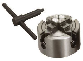 四爪チャックΦ80mm No.66010 四爪インディペンデントチャック。四角材や台形材等の把握に用いる器具です。4つの爪がそれぞれ独立して可動するため、円筒材の心出にも適しています。その他、フライス盤用アタッチメントのロータリーテーブルでも同様に使います。 |