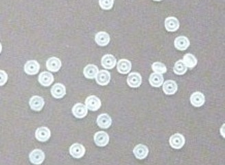 パールクッション(1000個) 真珠と真珠の間に入れてすり傷防止するクッションです。 寸法 径1.7×厚0.6×穴0.75mm |