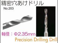 精密穴あけドリル リューターに取り付けて精密穴あけを加工ができます。 軸径:Φ2.35mm サイズ:0.5~2.3mm |