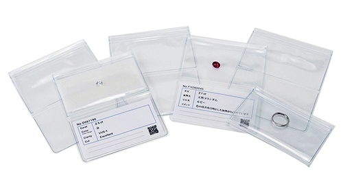 高級台紙付パール用ビニール袋 寸法:240×170×0.2mm (1枚入) 真珠ネックレス、オメガネックレスに最適な厚手チャック付ビニール袋です。スエード調の高級感のある専用台紙にキレイに収納できます。 600円(税別) |
