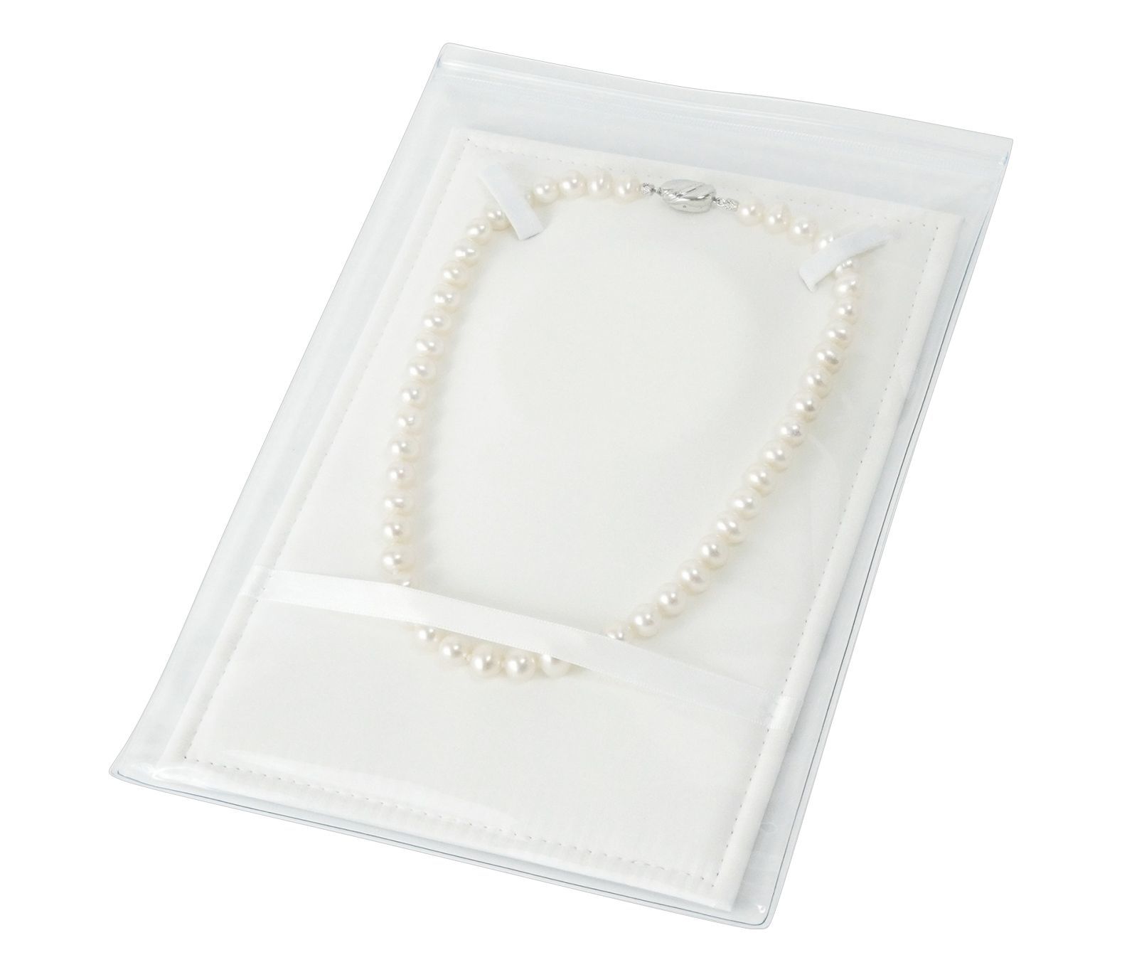 真珠ネックレス、オメガネックレスなどに最適な台紙付きチャック付厚手ビニール袋です。