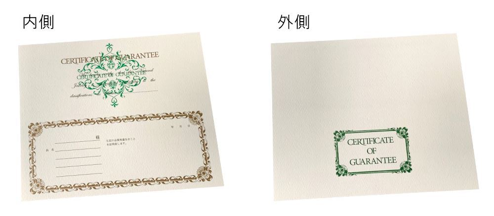 保証書C(10枚入) サイズ:180×250mm 高価なジュエリーに最適な保証書です。 800円(税別) |